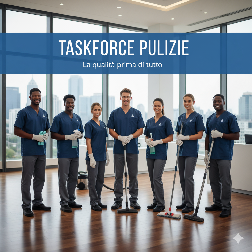 Taskforce Pulizie è la soluzione ideale per chi cerca un servizio di pulizie professionale e completo. Ci occupiamo di pulizia e cura degli ambienti, gestione di spazi e forniture, garantendo un'alta qualità di servizio e la massima attenzione alle esigenze dei nostri clienti.